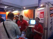 That’s our very own dynamic duo Ken and Justin Hemmel working the booth with our partner OpenSRS.