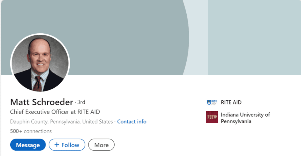 Prior to his tenure at Rite Aid, Matt Schroeder was employed at Arthur Andersen LLP as an Audit Manager. He earned his bachelor’s degree in accounting from Indiana University of Pennsylvania. Additionally, Schroeder is a board member of the Whitaker Center for Science and Arts, a nonprofit organization that serves the greater Harrisburg, Pennsylvania area.