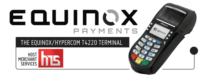 The Equinox/Hypercom T4220 is one of the most hard-working and secure retail credit card processing terminals on the market. Measuring eight inches long and a little more than three and a half inches wide, the 4220 weighs a measly one pound. Merchant services on the device include high IP transaction and download speeds, complete and compatible security for standard point-to-point encryption schemas, programmable navigation keys, and Equinox Payments’ easy to use interface.