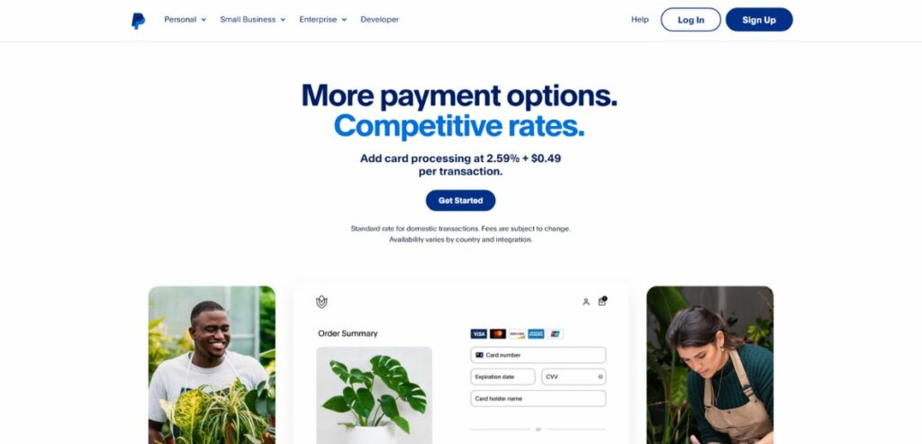 The entry hurdle to using PayPal is minimal for new businesses. You won’t have to pay anything to open a PayPal Business account. It requires little time to set up, doesn’t require a credit check, and has no cancellation or monthly fees. You can collect payments using various methods and from almost anywhere globally. Additionally, e-commerce companies can quickly integrate PayPal with their websites.