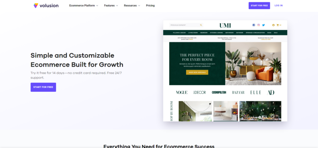 Like Shopify, Volusion is another e-commerce platform offering online business tools and services. With Volusion, users can build, design, and customize their websites, manage inventory, process payments, and oversee online business operations. The platform also features customer relationship management tools, options for gathering customer feedback, a mobile app, SEO enhancement tools, analytics, and a suite of developer resources.