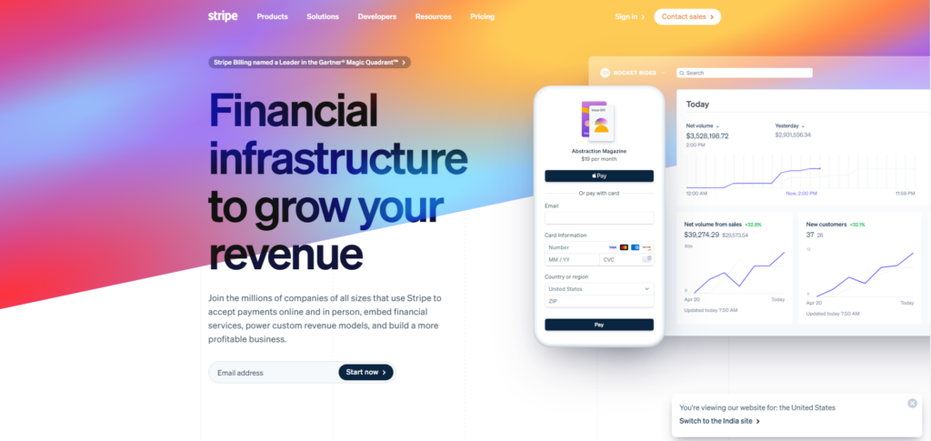 Stripe is a popular payment platform that accommodates both online and in-person transactions, making it a practical option for businesses. It is particularly useful for international sales, supporting more than 135 currencies and a variety of payment methods, including credit cards, mobile wallets such as Google Pay and Apple Pay. Stripe’s fees are competitive, charging 2.7% plus $0.05 for in-person payments and 2.9% plus $0.30 for online transactions, similar to other services like Square or PayPal.